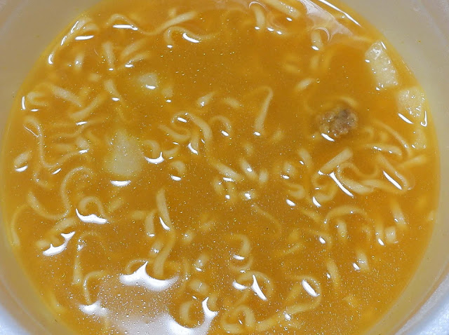マイルドカレーと云うのが本品の特徴なのですが、最後までチキンラーメンが断然強く主張しているカップ麺=チキンラーメンでした。