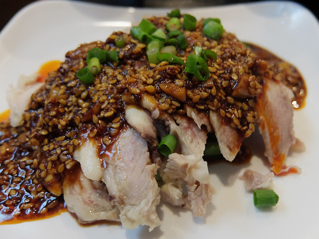 蒸し鶏に、ニンニクや辣油等の醤油特製タレを掛けられたヤツ!